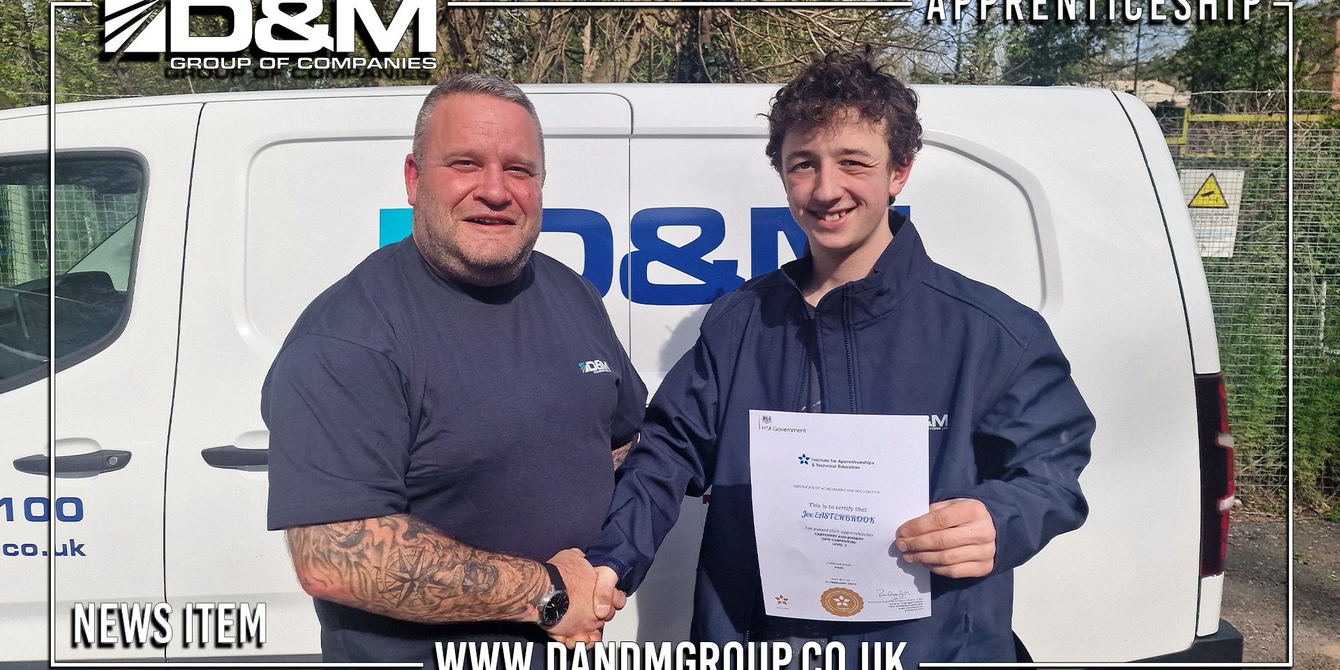 Congratulations to Joe Easterbrook on completing his Carpentry Apprenticeship with D&M and achieving his qualification.